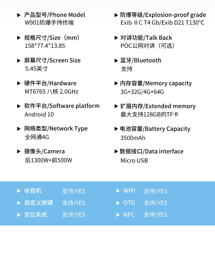 產(chǎn)品特點:雙卡雙待4G全網(wǎng)通IP-68防水|防震|防塵認證
